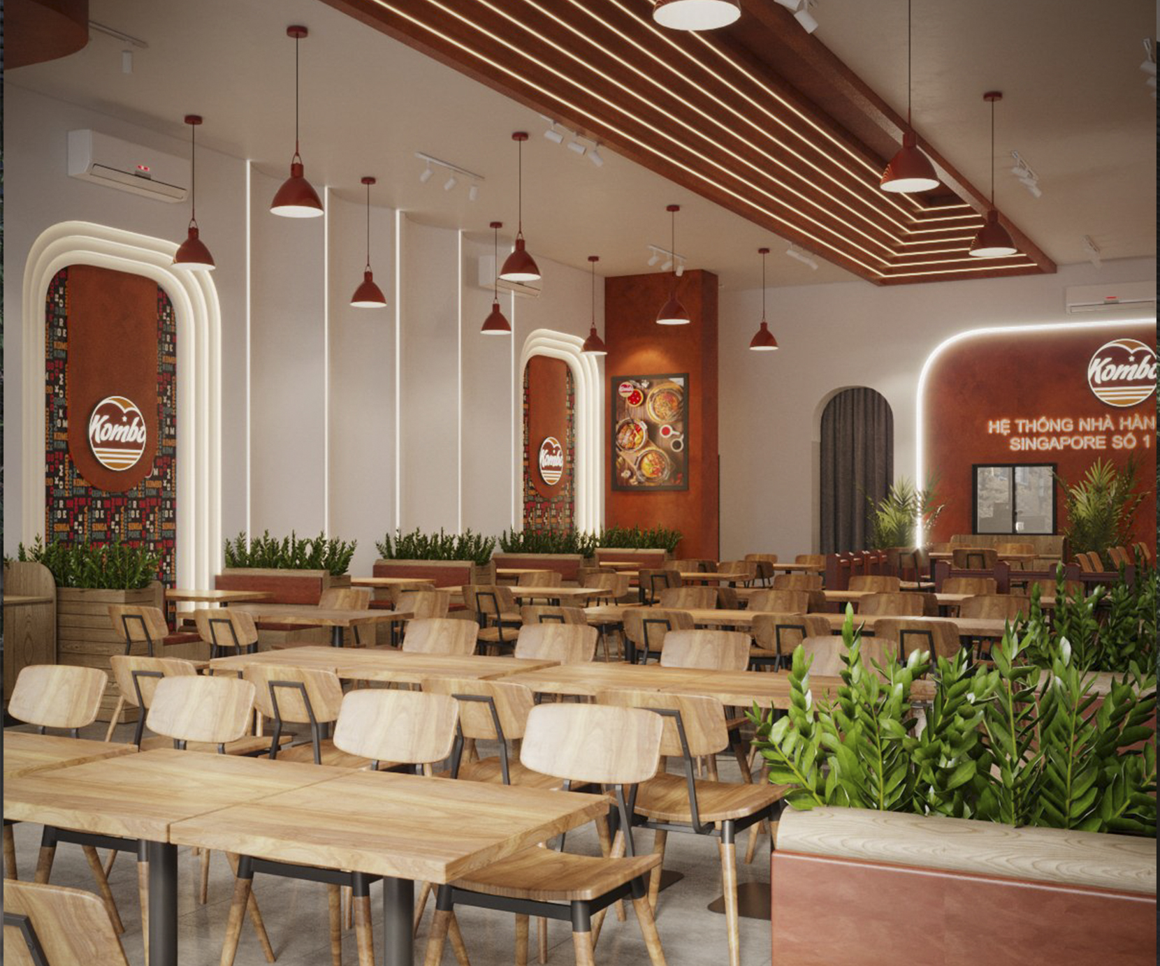 – KOMBO tiến hành thiết kế nhà hàng theo mặt bằng đã chốt. Tư vấn XDCB hoặc tổ chức XDCB theo thiết kế đã chốt.
