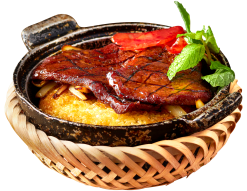 Cơm niêu bò sốt tiêu đen đặc trưng bởi vị ngọt từ những miếng thịt bò hảo hạng, vị cay nhẹ của tiêu cùng sự hòa quyện tuyệt vời của nước sốt.